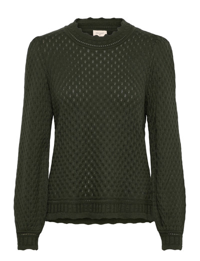 Pullover from Freequent in a soft, knitted material with a beautiful pattern. In addition, the pullover has a casual fit and lace trimmings in the rounded neckline, the long puff sleeves and the bottom hem. A detail that adds a feminine touch.