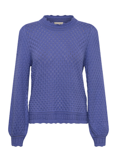Pullover from Freequent in a soft, knitted material with a beautiful pattern. In addition, the pullover has a casual fit and lace trimmings in the rounded neckline, the long puff sleeves and the bottom hem. A detail that adds a feminine touch.