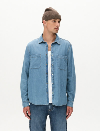 StrygefriDenne langærmede skjorte er fremstillet i denim med en let tekstureret overflade, hvilket giver et robust og raffineret udtryk. De afrundede brystlommer tilføjer et klassisk touch, hvilket gør den til en alsidig tilføjelse til enhver garderobe.