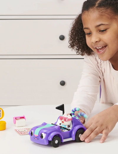 Sæt motoren i gang og drøn ud på et kat-tastisk picnic-eventyr med Gabbys DH Racerkat & Pandy Potes Picnic-sæt. Racerkat ligner den legende halvkat- og halvbilkarakter, som du elsker fra serien, og Pandy Pote og en anden karakter fra din Gabbys Dukkehus-samling kan sidde på hendes sæder (yderligere figurer sælges separat). Racerkat vækkes til live, logrende med halen fra venstre mod højre, når du skubber hende frem. Skub ned på hendes motorhjelm for at få hende til at blinke, eller skub ned til venstre og højre for at få hende til at se til venstre og højre. Dette sjove sæt indeholder også en eksklusiv Pandy Pote-figur, du ikke finder andre steder, sammen med et picnic-tæppe med motiv, en katteformet køletaske og en Dukkehus Levering med en overraskelsestilbehørsdel indeni. Pak din særlige Dukkehus Levering ud, ligesom Gabby gør i begyndelsen af hver episode, for at finde lyserøde solbriller, som Pandy Pote kan have på. Når du har fundet det perfekte picnicsted, kan du brede tæppet ud og lege, at du tager dine snacks ud af køleren - låget kan åbne og lukke. Brug din fantasi til at skabe dine egne spændende eventyr med Racerkat og Pandy Pote og genoplev dine yndlingsøjeblikke fra den originale NETFLIX-serie. Vil du gerne have endnu mere dukkehussjov, passer Racerkat med Gabbys Dukkehus Kat-tastisk Dukkehus (sælges separat) og vil være en fantastisk tilføjelse til din dukkehusverden. Hvis du gerne vil have en sidste overraskelse, kan du scanne QR-koden, der findes inde i Dukkehus Leveringen for at låse en særlig reward i Gabby's Dollhouse-appen op (tilgængelig på iOS og Android). Tag på tur med Racerkat og Pandy Pote og gør dig klar til et picnic-eventyr med Gabbys DH Racerkat & Pandy Potes Picnic-sæt.
