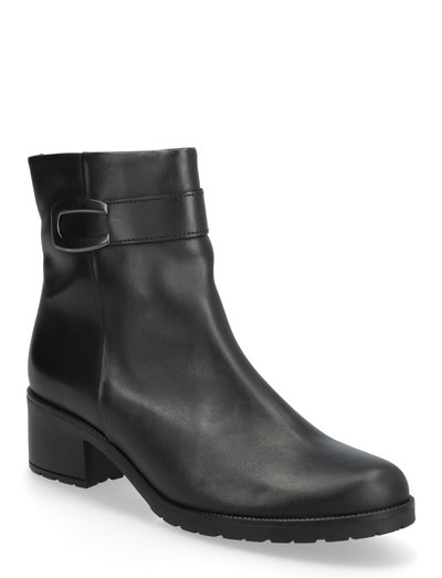 Disse ankelstøvler er designet med en bred pasform og tilbyder både komfort og stil. Overdelen i læder suppleres af et dekorativt element og en praktisk lynlåslukning i siden. Med mikrofiberfor og en udtagelig indersål, afsluttet med en TR-sål.