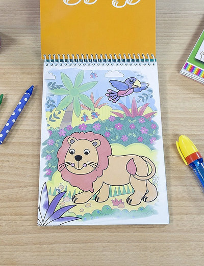 3+ ÅrA coloring book that you can colour again and again. Fill the pen with water and colour the pictures. Colours and patterns appear on the pages. When the image dries, the page becomes white again. In the pictures of the colouring book, pirates have adventures. Perfect for traveling! 3+