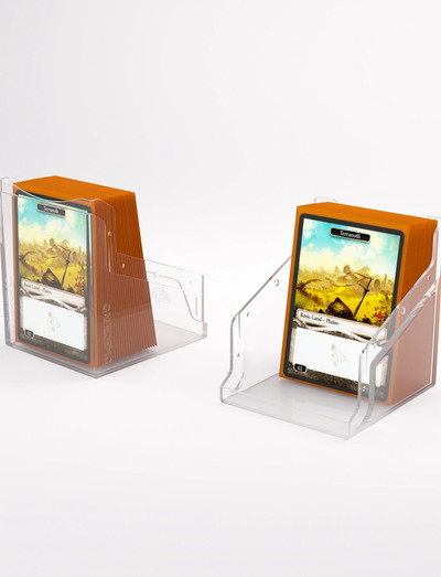 The Bastion 100+ XL is a very compact and rock-solid deck box to safely protect 100+ double-sleeved cards in Thick Inner Sleeves. Due to translucent materials and smart positioning of the closing flaps, the top or Commander card is fully visible from the outside without opening the box.