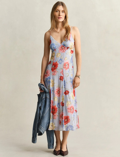 Med et livligt blomsterprint har denne mid-længde kjole en flatterende V-hals og justerbare skulderstropper, der sikrer en perfekt pasform. Den almindelige pasform gør den til et behageligt valg til varmt vejr.