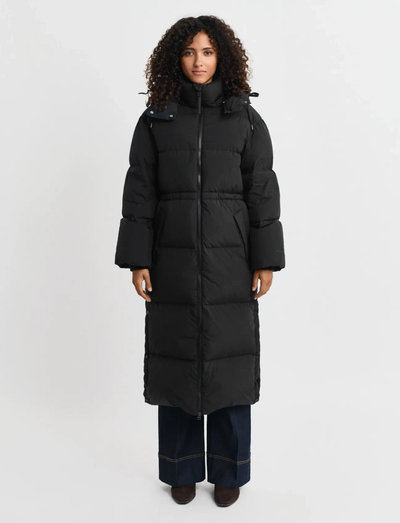 Denne lange dunjakke giver varme og beskyttelse og er designet med en vandafvisende finish. Den justerbare hætte giver ekstra dækning, mens den indvendige snøre giver mulighed for en tilpasset pasform. Denne overtøjsmodel er fyldt med 650-fill-power dun og sikrer enestående isolering mod kulden. Hvis du ønsker en tættere pasform, kan du overveje at bestille en størrelse mindre end normalt.