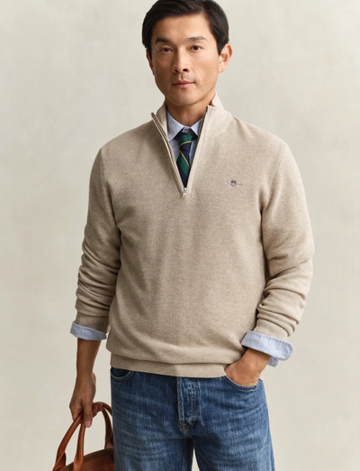 Denne half-zip er fremstillet i mikro-tekstureret bomuld og giver et raffineret, afslappet look. Den almindelige pasform sikrer komfort, mens ribkanterne giver en tætsiddende fornemmelse. Den er afsluttet med brandets grafik broderet på brystet.