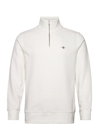 Gant REG SHIELD HALF ZIP SWEAT er en klassisk sweatshirt med et moderne twist. Den har en halv lynlåslukning og et lille logo på brystet. Sweatshirten er lavet af en blød og behagelig bomuldsblanding.