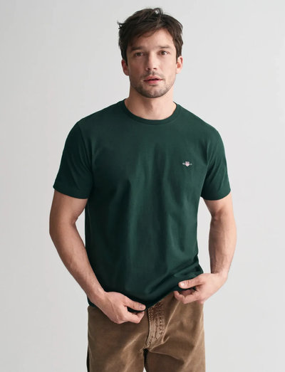 Gant REG SHIELD SS T-SHIRT er en klassisk og komfortabel t-shirt. Den har en rund hals og korte ærmer. T-shirten er lavet af et blødt og åndbart stof, hvilket gør den perfekt til hverdagsbrug.