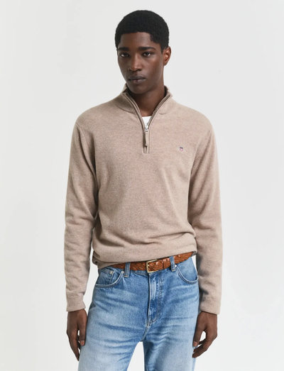 Denne halv-zip pullover er lavet af superfin lammeuld, der giver en blød og behagelig fornemmelse. Den har et klassisk design med en halv-zip lukning og et lille logo på brystet. Pulloveren er perfekt til lagdeling i koldere vejr.