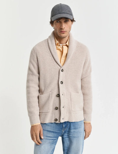 Denne cardigan er fremstillet i en varm uldblanding og har en stilfuld sjalskrave. Den har knaplukning foran og to praktiske, strikkede lommer. Designet til en afslappet pasform; overvej at gå en størrelse ned for en mere tætsiddende silhuet. Kan maskinvaskes på uldprogram for nem pleje. Vask og stryg med vrangen ud sammen med lignende farver, og form den, mens den er våd.