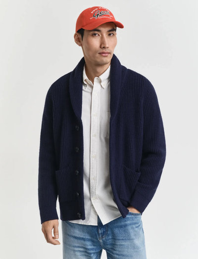Denne cardigan er fremstillet i en varm uldblanding og har en stilfuld sjalskrave. Den har knaplukning foran og to praktiske, strikkede lommer. Designet til en afslappet pasform; overvej at gå en størrelse ned for en mere tætsiddende silhuet. Kan maskinvaskes på uldprogram for nem pleje. Vask og stryg med vrangen ud sammen med lignende farver, og form den, mens den er våd.