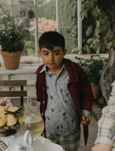 Denne overshirt er fremstillet i blød fløjl og har en afslappet pasform, der giver god komfort og mulighed for lag-på-lag. Den er designet med en klassisk krave og opsmøgede ærmer, hvilket gør den alsidig og nem at bruge som en let jakke eller et ekstra lag.