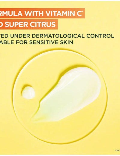 Garnier skinactive vitamin c day cream er en certificeret økologisk fugtgivende dagcreme til hud som ser kedelig ud. formlen indeholder koncentreret c-vitamin* og super citrus og giver en hud som ser næret, glattere og mere strålende ud dag efter dag! cremen har vegansk formel**.