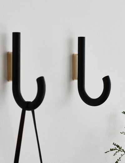 Hook mini er en diskret og smuk tilføjelse til din boligindretning. Det enkle design inviterer alle til at hænge deres jakker, tasker eller paraplyer i entreen. Hook mini kan også holde viskestykker eller forklæder i køkkenet eller organisere håndklæder og badekåber på badeværelset. Bøjlerne fås i sort eg, varm valnød eller eg behandlet med hvidt pigment og mat lak, alle med smukke detaljer i træ, mens beslagene fås i messing, krom og sort metal.