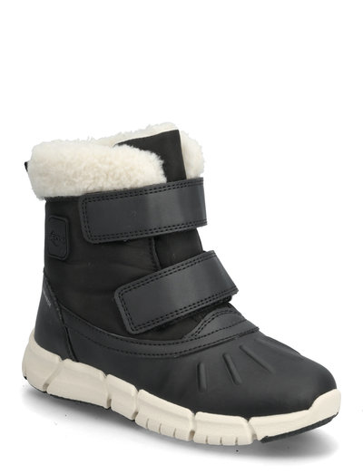 Disse ankelstøvler er designet til udendørs sjov og giver vandtæt beskyttelse til aktive børn. De er fremstillet af en blanding af nylon og lædereffektmateriale og er klar til al slags vejr. Støvlerne har også et hyggeligt for og dobbelte velcrostropper for en sikker pasform.