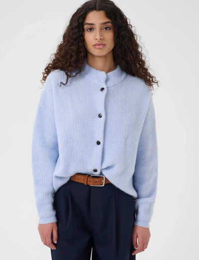 Denne strikkede cardigan har en behagelig, boxy pasform, lange ærmer og en kort længde, hvilket gør den til et alsidigt lag-på-lag stykke.