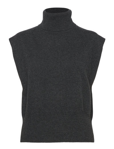 En strikket vest er en alsidig mulighed for lag-på-lag. Denne ærmeløse model har en løs pasform og en kort længde, hvilket gør den ideel til at skabe forskellige stilfulde outfits.