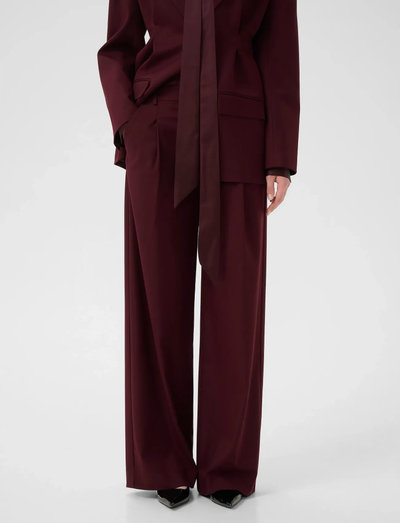 Disse habitbukser er skabt til en flatterende silhuet og har en løs pasform og brede ben. Designet med en mellemhøj talje og fuld længde giver et alsidigt valgmulighed til både professionelle og afslappede omgivelser. En behagelig og stilfuld tilføjelse til enhver garderobe.
