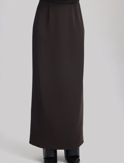 MalenaGZ-skørtet er en enkel og alsidig stil, der kan bruges med enhver slags top. Den er højtaljet med en skjult talje og en usynlig lynlås i ryggen. Skørtet er fuldlængde og har en lige silhuet, og i ryggen har den en høj slids.