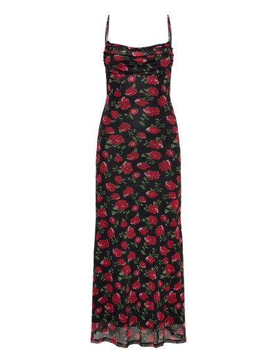 Denne maxikjole er fremstillet i let mesh og giver en behagelig og åndbar pasform. Den flydende silhuet og de fine stropper gør den ideel til varme vejrlejligheder. Kjolen har et subtilt draperet udskæring, der tilføjer et strejf af elegance.