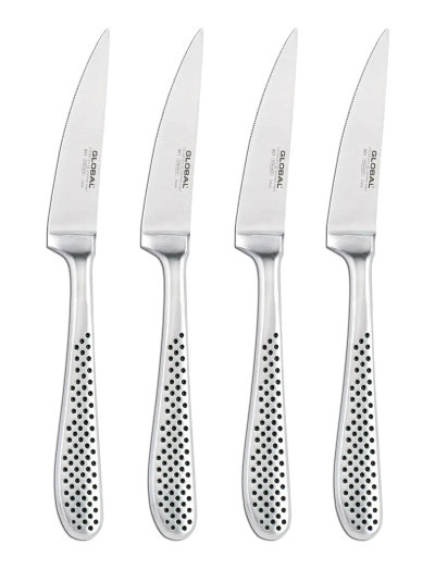 Smag til og dæk bordet med Globals bestik. Med den skarpe steakkniv kan du skære igennem hverdagspizzaen lige så nemt som søndagsstegen. Kniven sælges enkeltvis, men også som 4-pak og i bestiksæt med gafler og knive. Håndvask anbefales.