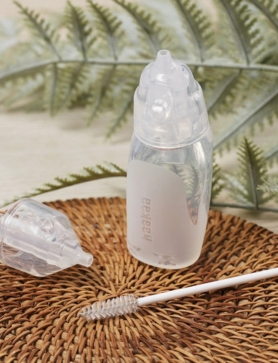 Haakaa Silicone Penguin Nasal Aspirator er en hurtig, stille og effektiv måde at rense din babys tilstoppede næse på. Aspiratoren er fremstillet af blød, fødevaregodkendt silikone og fjerner næsesekret med et let klem, så din baby får frie luftveje og kan trække vejret lettere. Aspiratoren har et dobbeltventil-design, der forhindrer væske i at løbe tilbage i næsen. Den leveres med to forskellige spidser, så du kan vælge den, der passer bedst – perfekt til næser i alle størrelser. Den er enkel at bruge og kan skilles helt ad, så du kan rengøre den grundigt og undgå bakterier og mug. Beholderen er gennemsigtig med tydelige målemarkeringer, så du kan se, hvor meget væske der er fjernet. Den er let, transportvenlig og altid klar til at hjælpe, når næsen bliver snottet. Haakaa Tube Cleaning Brush er designet til at nå helt ind i de små kanaler og hjørner af aspiratoren, så du kan holde den ren og hygiejnisk mellem hver brug. Funktioner • Udnytter naturlig sugekraft til skånsom rengøring • Blød, klembar silikone, der er nænsom mod små næser • Dobbeltventil, der forhindrer væske i at løbe tilbage • To forskellige spidser – passer til alle aldre • Kan skilles ad for nem rengøring • Let og bærbar • Gennemsigtig beholder med måleskala • Kan steriliseres ved kogning • Lavet af 100 procent fødevaregodkendt silikone • Tube Cleaning Brush sikrer en grundig rengøring i alle dele • Fri for BPA, PVC og ftalater Brugsvejledning Vælg den spids, der passer bedst til din baby. Den skal sidde tæt og behageligt i næseboret – kun spidsens yderste del skal ind. Sæt barnet oprejst, så tyngdekraften hjælper med at dræne væsken. Hvis der sidder tørret slim i næsen, kan du dryppe et par dråber saltvandsopløsning i for at løsne det, før du suger med aspiratoren. Med udløbsventil A pegende opad, tryk forsigtigt på aspiratorens krop og placer spidsen i næseåbningen – pres den ikke for langt ind. Slip langsomt grebet for at trække væsken ud. Bemærk: Produktet er beregnet til at fjerne næsevæske, ikke større faste elementer. Aldersvejledning • Buet spids: 0–12 måneder • Kegleformet spids: 12 måneder+ Rengøring og pleje Skil produktet ad før rengøring. Bemærk, at udløbsventil B kan tages af. Steriliser aspiratoren før første brug. Rengør efter hver brug i varmt sæbevand, skyl grundigt og lad den tørre helt, inden den opbevares. Aspiratoren kan steriliseres i dampsterilisator eller koges i to til tre minutter. Brug ikke rengøringsmidler, der indeholder blegemiddel. For at rense silikonespidsens luftkanal kan du bruge Haakaa Tube Cleaning Brush eller en anden lille børste. Du kan også skylle med varmt vand for at fjerne rester. Vask rengøringsbørsten i hånden med varmt sæbevand, skyl grundigt og lad den tørre. Børsten må ikke kommes i mikrobølgeovn, sterilisator eller kogende vand, da den indeholder rustfrit stål. Forsigtighed Kontroller produktets tilstand regelmæssigt, og udskift det ved tegn på skade. Opbevar produktet væk fra skarpe genstande. Brug kun bløde børster eller svampe til rengøring – hårde redskaber kan ridse overfladen. Opbevar tørt og væk fra direkte sollys. Dette er ikke legetøj. Brug kun produktet som beskrevet og altid under opsyn af en voksen. Hold uden for børns og dyrs rækkevidde, når det ikke er i brug. De aftagelige ventiler kan udgøre en kvælningsfare. Pres aldrig spidsen for langt ind i næsen. Da rengøringsbørsten indeholder rustfrit stål, må den ikke koges, steriliseres eller bruges i mikrobølgeovn.