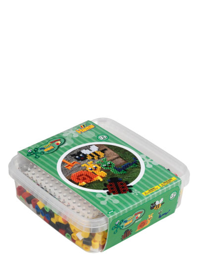 Æske med Hama Maxi perler. 600 stk. i blandede farver og 1 firkantet perleplade samt 4 perlefødder, vejledning og strygepapir. Leg med perler øger kreativieten og træner finmotorik, mønstergengivelse, farvelære, logik og geometrisk sans. Kun fantasien sætter grænser.