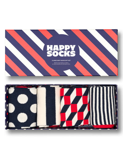 Dette gaveæske indeholder fire par strømper med forskellige mønstre. Strømperne er lavet af en blanding af bomuld, polyamid og elastan, hvilket gør dem behagelige og holdbare. De er perfekte til hverdagsbrug og kan bæres af både mænd og kvinder.