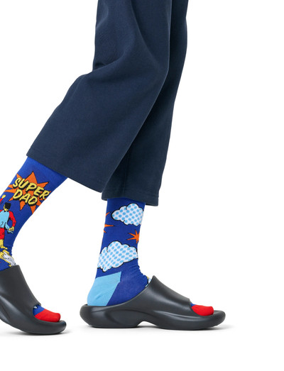 Tag på eventyr med vores Flying Super Dad Sock – en farverig hyldest til hverdagens superhelte i farskikkelse! Sokkerne sprudler af energi med et modigt motiv af en flyvende superfar, kappe og det bredeste grin. Under kanten gemmer sig den hemmelige superheltetitel "Super dad" – præcis som fars indsats aldrig går ubemærket hen. Vi elsker ægte selvironi og stor personlighed, og de her sokker er den sjoveste måde at fejre den fantastiske far i dit liv på. Friske farver, fræk humor – garanteret smil-fremkaldende!