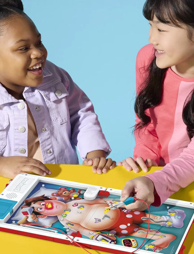 6+ ÅrYou’re – BZZZT! – basically a doctor. It’s the favourite children's board game with exciting updates! In this edition of the Operation game, choose from two ways to play: classic gameplay in Hospital mode or an edge-of-your-seat frenzy in Emergency mode. In Hospital mode, little doctors draw Bandage cards for wacky ailments. The suspense builds as they try to keep their hands steady while operating on Cavity Sam or – BZZZT! – his red nose lights up! In Emergency mode, the race is on to remove as many ailments as possible before time’s up. But oops! If the tweezers hit the side, Cavity Sam will burp, yelp and make other hysterical sounds that keep children giggling! In both modes, whoever removes the most ailments wins – and 'heals' their patient. This adorable game comes in an all-in-1 carrying case with storage, so it’s a great children's travel game for playing anywhere, at any time. Operation and Hasbro and all related trademarks and logos are trademarks of Hasbro, Inc.