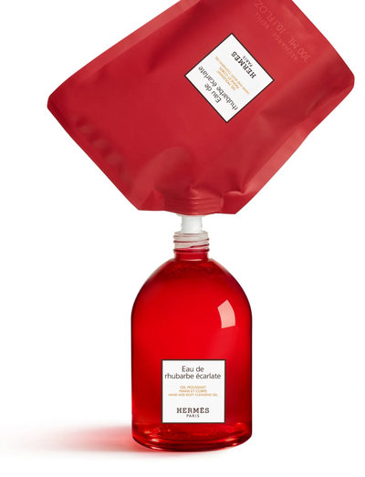Flasken er fremstillet af genbrugsglas. Eau de rhubarbe écarlate brusegel til krop og hår refill giver dig mulighed for at genopfylde flasken med 300 ml.