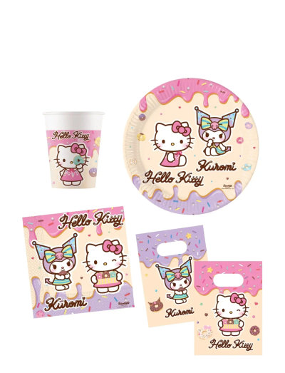 Fejr din fødselsdag med Hello Kitty og Kuromi! Med vores udvalg af Hello Kitty og Kuromi festudstyr bliver din børnefest ekstra festlig. Indeholder 8 tallerkener, 8 krus, 20 servietter, 4 slikposer
