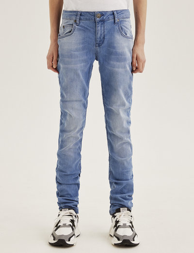 Skinny fitDisse jeans er et glimrende valg til drenge, der ønsker et stilfuldt og komfortabelt look. De er lavet af en blød og strækbar blanding af bomuld og elastan, hvilket gør dem perfekte til at have på hele dagen. Den smalle pasform klæber til benene og skaber en flatterende silhuet.