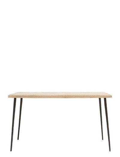 Inviter dine gæster over til middag serveret ved dette smukke spisebord fra House Doctor. Det skaber de ideelle rammer for aftenen. Bordet hedder Club og er lavet af lyst mangotræ med jernben, der giver din boligindretning et varmt, stilfuldt touch. At sidde ved dette bord giver dig og din familie en masse gode oplevelser og uforglemmelige øjeblikke. Kombiner det med nogle enkle, sorte spisebordsstole for at skabe det perfekte look. Fordi bordpladen er lavet af mangotræ, kan den være lidt ujævn. Det er en del af designet og giver bordet et robust og rustikt udtryk. Bordet fås også i en sortbejdset version.