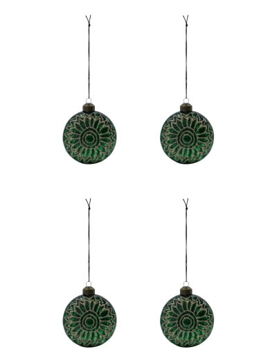 "Mød julens skønhed med disse elegante ornamenter i mundblæst glas. Den klassiske mørkegrønne farve kombineret med champagnefarvet glittermønster skaber en moderne og sofistikeret julestemning. De let flade, runde former giver et stilfuldt udtryk, der tilføjer dybde og variation i din julepynt. Hæng dem på træet eller brug dem i en dekorativ opstilling for et imponerende look.- Mundblæst glasdesign- Klassisk mørkegrøn nuance- Champagne glitterdetaljer- Moderne, flade kugleformGør din julestemning unik med disse elegante ornamenter."
