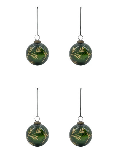 Skab en elegant julestemning med disse smukke ornamenter i mørkegrønt glas. Håndlavede og håndmalede med guld, udstråler de klassisk skønhed og vintage-inspireret charme. De eksklusive detaljer og unikke design gør dem til en værdifuld tilføjelse til din julepynt.