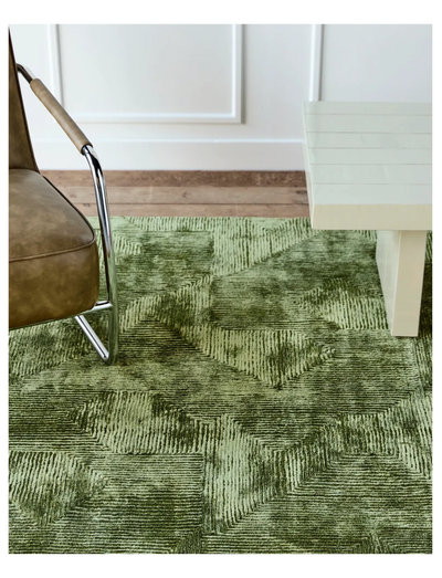 Dette glansfulde, håndlavede tæppe i grøn tilfører din indretning både elegance og eksklusiv æstetik. Det grafiske mønster skaber en sanserig oplevelse, uanset om du lægger det i stuen, i soveværelset eller bruger det som vægkunst.