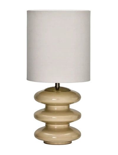 Bordlampen forener håndlavet elegance med et moderne look og en klassisk form. Den lyseblå glasfod tilfører stil, mens den råhvide bomuldsskærm blødt filtrerer lyset og skaber en indbydende atmosfære. Brug den ved hjemmets lænestol, som stemningsskaber på natbordet eller som et smukt indslag på reolen. Uanset placering giver lampen personlighed og varme til din indretning.