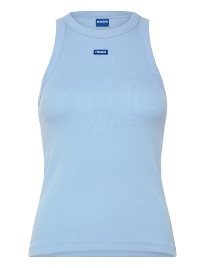 Denne ribstrikkede tanktop har et badge-logo for diskret branding. Det ærmeløse design gør den perfekt som lag eller alene.