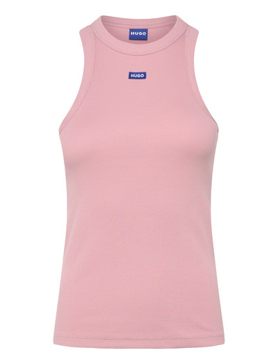 Denne ribstrikkede tanktop har et badge-logo for diskret branding. Det ærmeløse design gør den perfekt som lag eller alene.