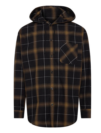 Denne overshirt har hætte og kombinerer afslappet stil med praktisk anvendelighed. Knaplukningen fortil suppleres af brystlommen, mens det ternede mønster giver et interessant visuelt udtryk.