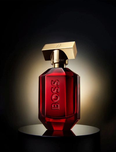 Flakonens dybrøde farve – i kombination med det ikoniske BOSS-logo og en duftprop i en varm gylden nuance med Double-B-monogrammet – afspejler duftens flammende karakter og sensuelle udtryk.