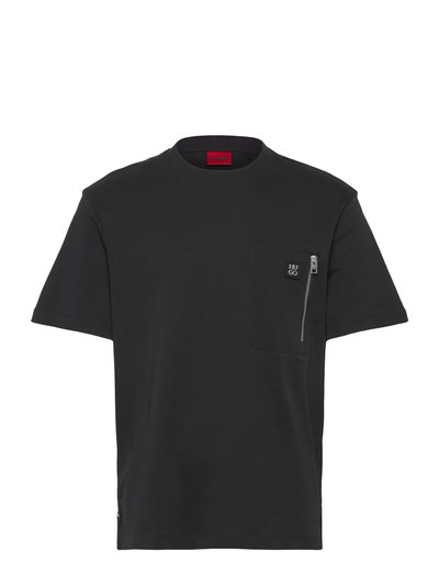 Denne kortærmede T-shirt har en brystlomme med lynlåsdetalje, hvilket giver et moderne twist til et klassisk design. Den lige silhuet sikrer en behagelig pasform, hvilket gør den til en alsidig tilføjelse til enhver garderobe.
