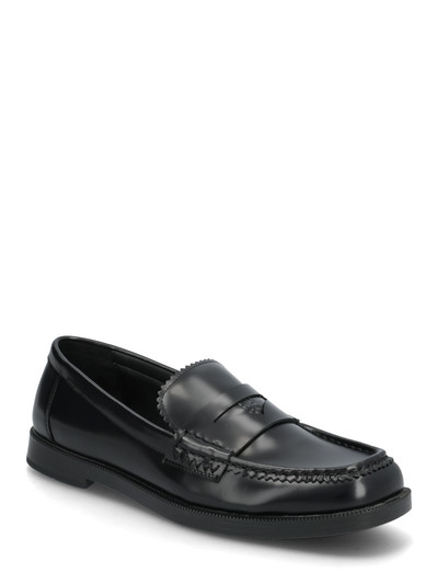 Detaljerede syninger fremhæver udseendet på denne loafer. Skoen har en semi-firkantet form, der giver en moderne silhuet, og et præget logo på pløsen, hvilket giver en sofistikeret, men afslappet stil, der er velegnet til hverdagsbrug.