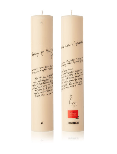 CHRISTMAS CANDLEH: 25 cm x B:5 cm 100 % stearinWick made from 100% stearinNordic Swan eco-labelBurning hours: approx. 50 hoursMake the countdown to Christmas nice and cozy with this Christmas candle. The candle is made from stearin. The Christmas candle has the allergy-friendly Nordic Swan eco-label. Choose between three designs. Our Recipe of Traditions candle is made in collab with Børns Vilkår and for each candle we donate 10 DKK to Børns Vilkår.