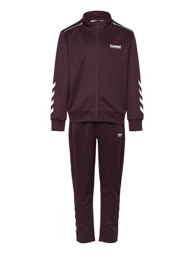 Dette træningssæt er perfekt til aktive dage og giver både komfort og stil. Sættet inkluderer en jakke med lynlås og matchende bukser, begge med sporty striber langs ærmerne og benene.