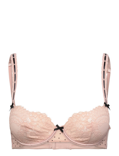 Denne bh giver let støtte og har fine blondekanter, der føles bløde. Bøjlen giver et let løft og form, mens sløjferne på stropperne og midten tilføjer en charmerende detalje. Kombinér med de matchende underdele for et fuldendt sæt.