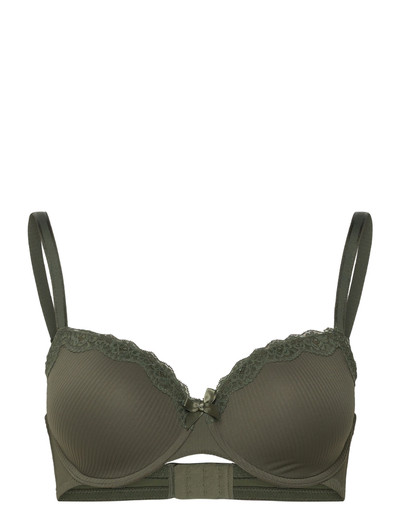 Denne vatterede bøjle-bh giver god støtte og har en naturlig form. Den er udsmykket med fine blonder foroven på skålene. Mellem skålene sidder en lille sløjfe, der giver et ekstra elegant look. Sæt den sammen med de matchende styles!