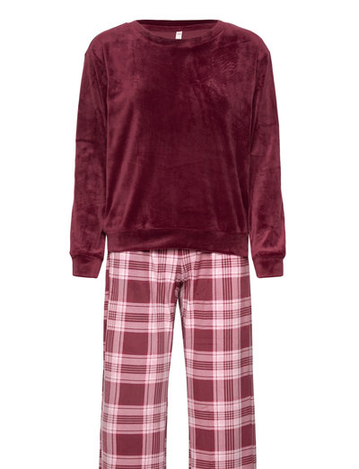 Gør aftenerne ubesværet stilfulde med dette pyjamasæt. Den langærmede overdel har en klassisk rund hals, mens de lange bukser med brede ben har elastik i taljen for ultimativ komfort. Perfekt til afslapning med stil.