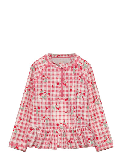 Denne langærmede badetop er perfekt til solrige eventyr og giver stilfuld dækning. Designet har et legende sløjfemønster og en charmerende flæsekant.